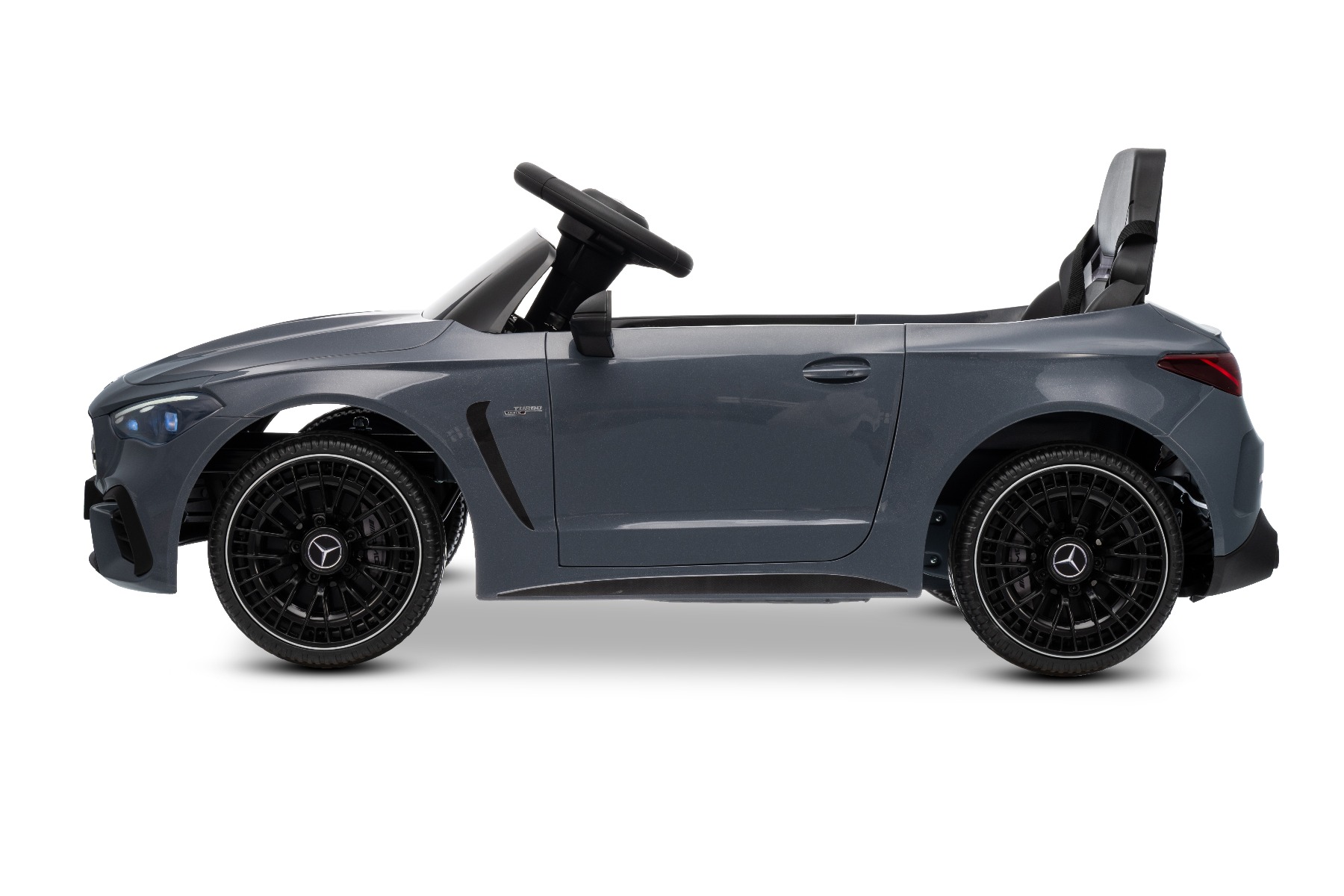 Mașinuță electrică de jucărie Mercedes CLE 12V cu tracțiune spate, gri, scaun individual, baterie litiu, lumini LED, scaun lat, telecomandă 2.4 GHz, player MP3 cu intrare USB/AUX și conexiune Bluetooth, licență ORIGINALĂ