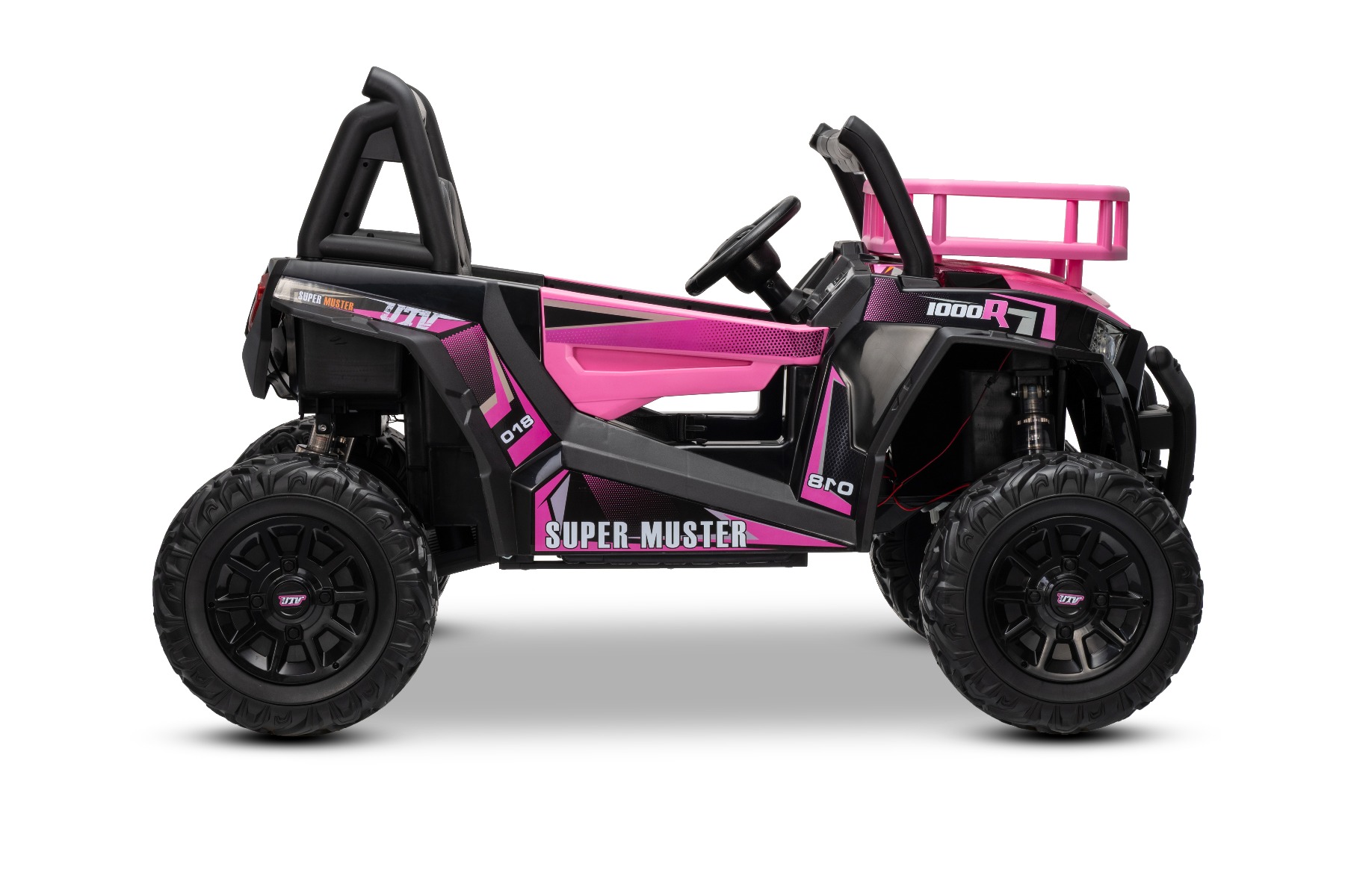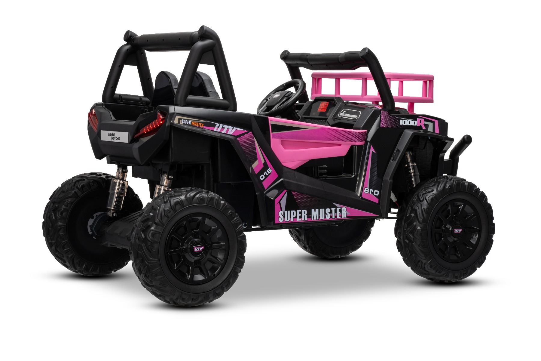 Mașină electrică pentru copii UTV 24V, Roz, două locuri, motor 2 x 200 W, Baterie litiu, roți EVA, osii cu arcuri, frână electrică, scaun tapițat, 2.4 GHz DO, două locuri, USB, AUX