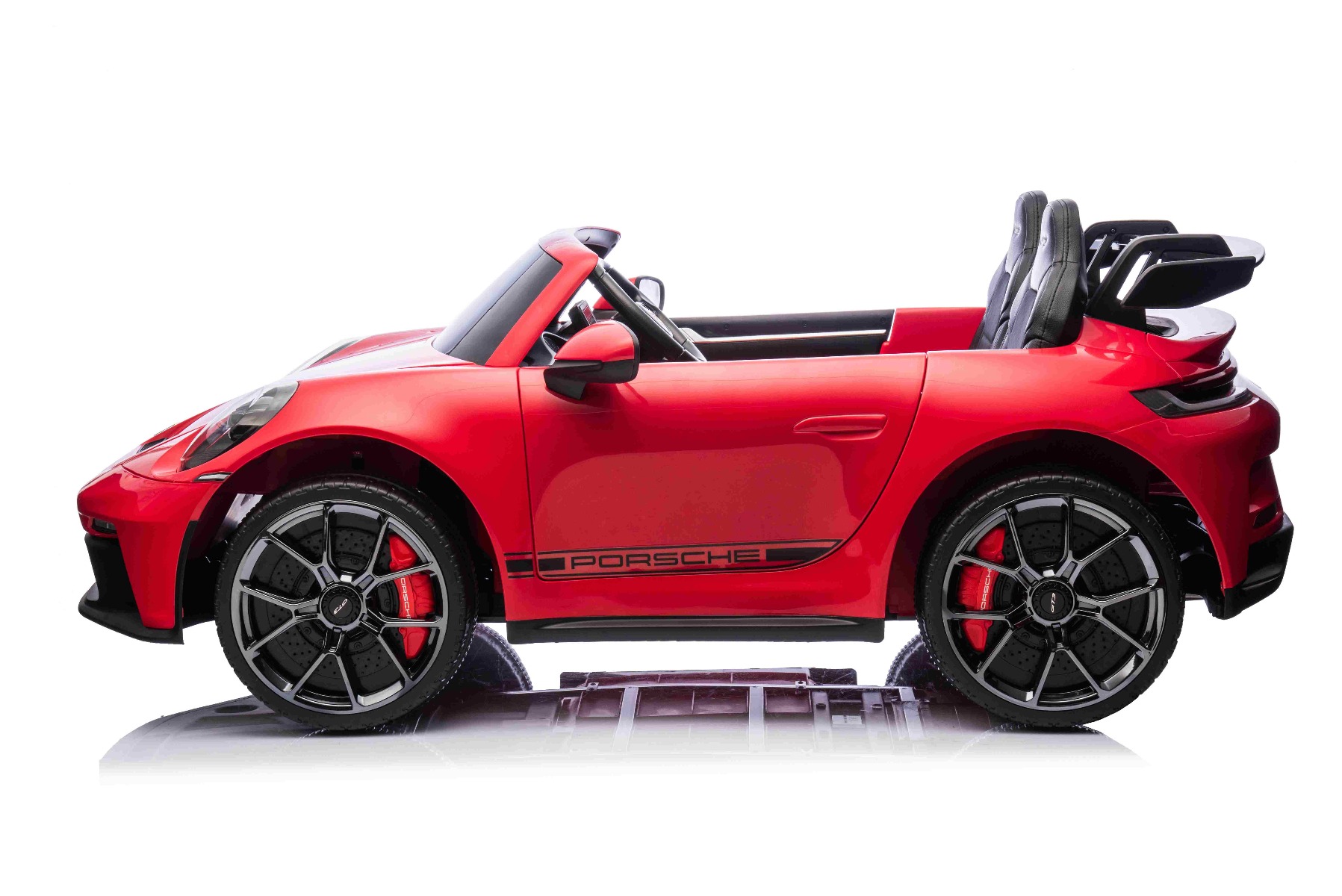 Mașină electrică copii Porsche 911 GT3 24V cu tracțiune 4x4, roșu, scaun cu două locuri, telecomandă 2.4 GHz, intrare USB/AUX, motoare 200W, suspensie, baterie litiu, lumini LED față și spate, licență ORIGINALĂ