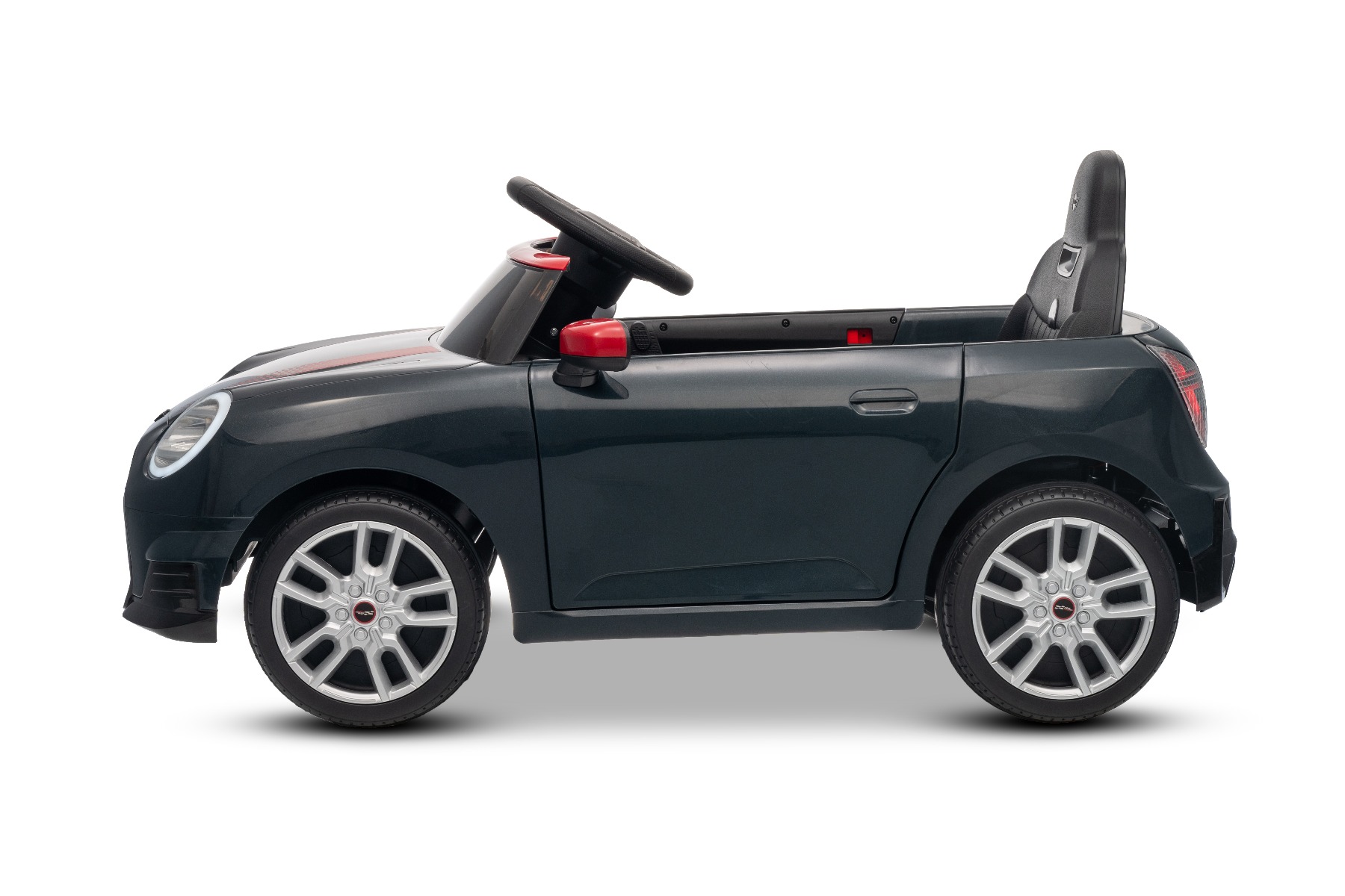 Mașinuță electrică elegantă cu design emblematic MINI. Modelul este echipat cu o pereche de uși care se deschid, ce permit o îmbarcare confortabilă. Când comutatorul este pornit, modelul imită sunetul pornirii, iar luminile LED față și spate se aprind. Există efecte sonore precum claxon, sunet de condus, cântece sau melodii. Există o intrare USB și conexiune Bluetooth, iar volumul este controlat direct prin intermediul playerului MP3 încorporat.