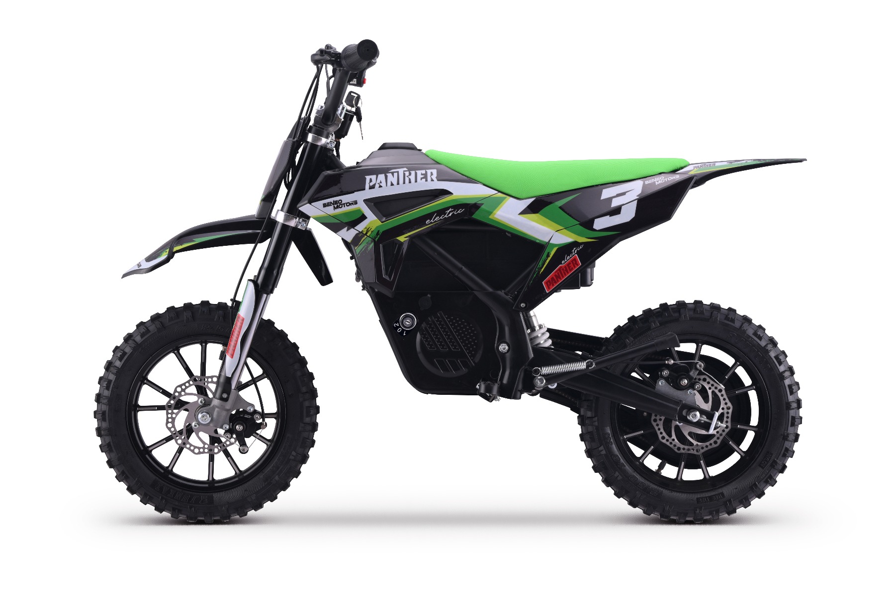 Vă prezentăm Beneo Motors Panther – motocross-ul ideal pentru copiii cu vârste cuprinse între 4 și 7 ani, dotat cu toate caracteristicile de siguranță: limitator de viteză cu 3 poziții (8-15-22 km/h), frâne pe disc și o protecție de lanț. La Beneo Motors, puteți fi siguri că utilizați cea mai recentă tehnologie și procese de fabricație impecabile.